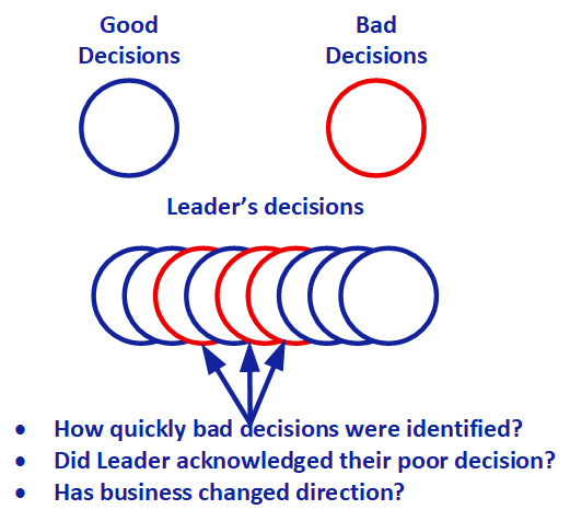 It is also important to understand that throughout business life leadership team will make many decisions and not all of them will turn out to be good. In that instance, it is important to see how fast they acknowledge, pivot, and cut their losses.